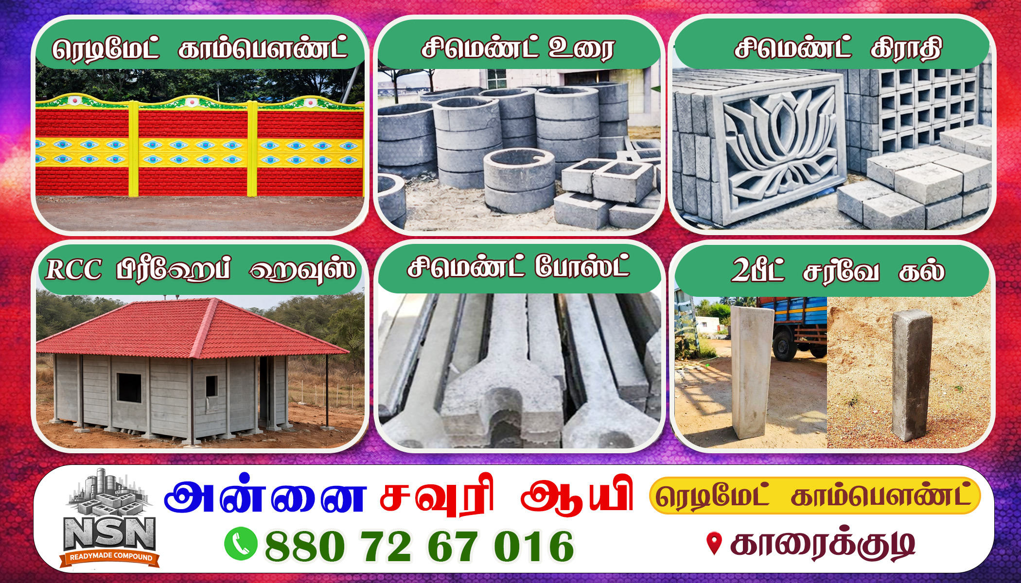 https://www.thebusinessads.com/karaikudi/Category/readymade-compound-wall/ad/ANNAI-SAURI-AAYI-RCC-READYMADE-COMPOUND-WALL-Karaikudi
